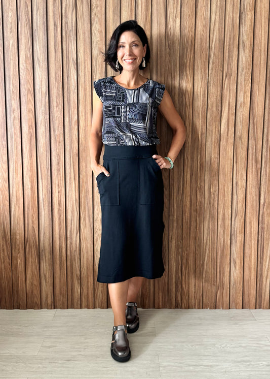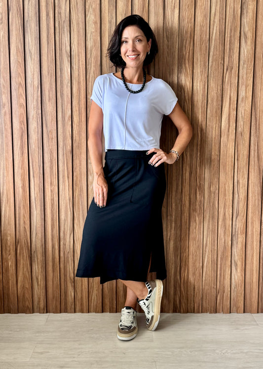 Saia Reta Moletinho com elastano (Preta)