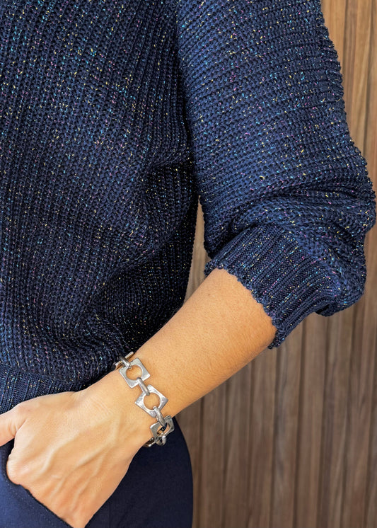 Blusa Tricô lurex manga morcego gola V - Marinho