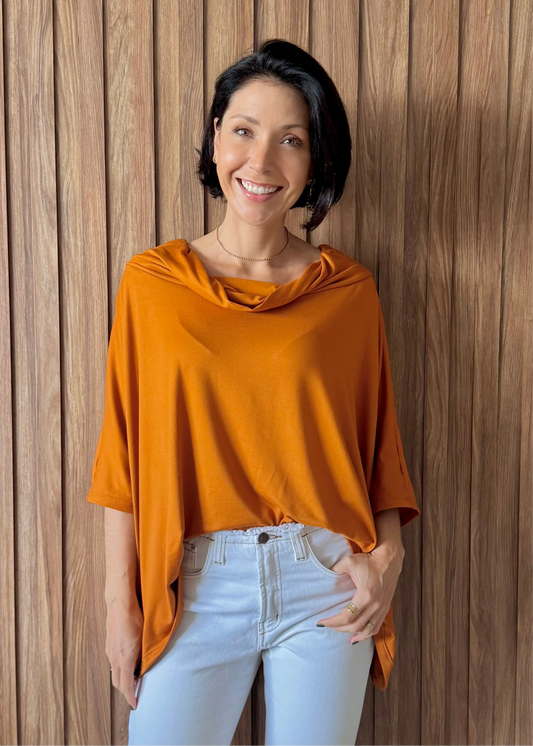 Blusa Golão Oversized em Suede Ecológico - Ocre