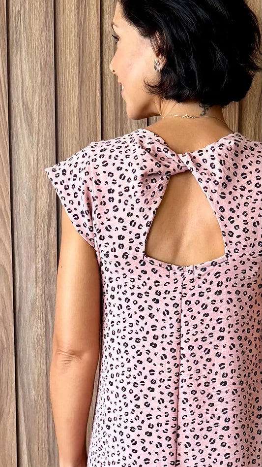 Vestido curto com detalhe em nó nas costas (rosê de oncinha)