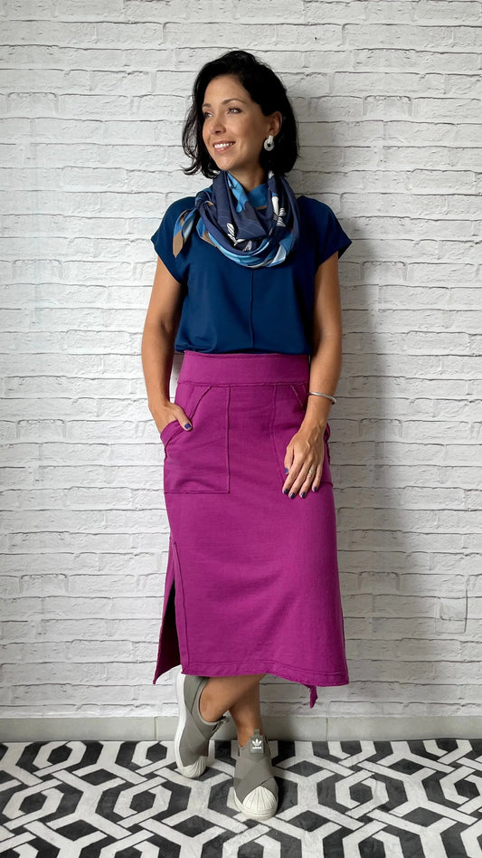Saia Reta Moletom com bolsos (Violeta)