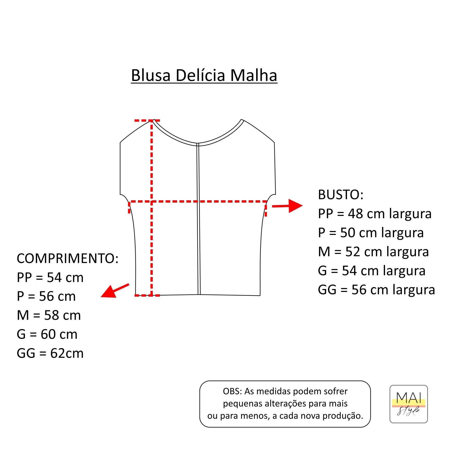 Nome perfeito pra ela, porque realmente é uma delííícia de usar! Sabe aquela básica não-dá-pra-ficar-sem?? É ela. Modelagem ampla, fica soltinha e super comfy. Malha deliciosa, manga e gola canoa confortável. Composição: 94% viscose 6% elastano