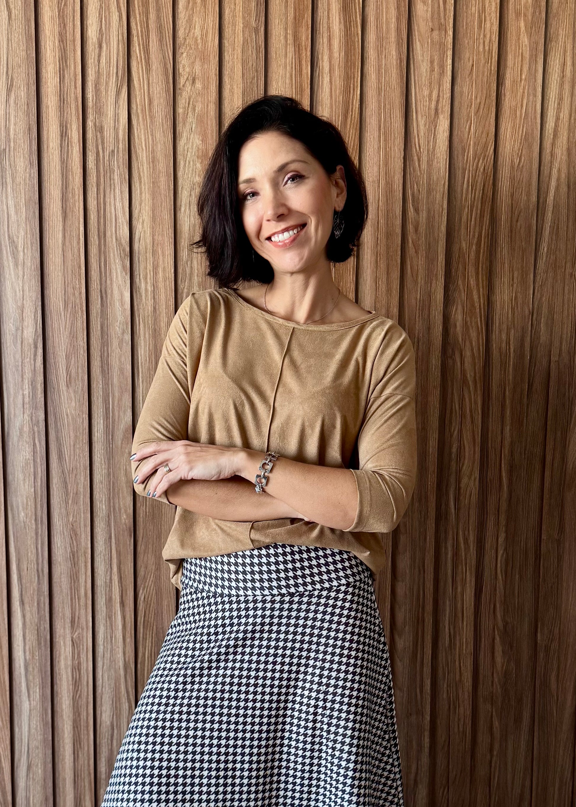 Nome perfeito pra ela, porque realmente é uma delííícia de usar! Sabe aquela básica não-dá-pra-ficar-sem?? É ela. Em suede, bem macia e gostosa ao toque. Modelagem ampla, fica soltinha e super comfy. Malha deliciosa, manga 3/4 e gola canoa confortável. Composição: 95% viscose 5% elastano