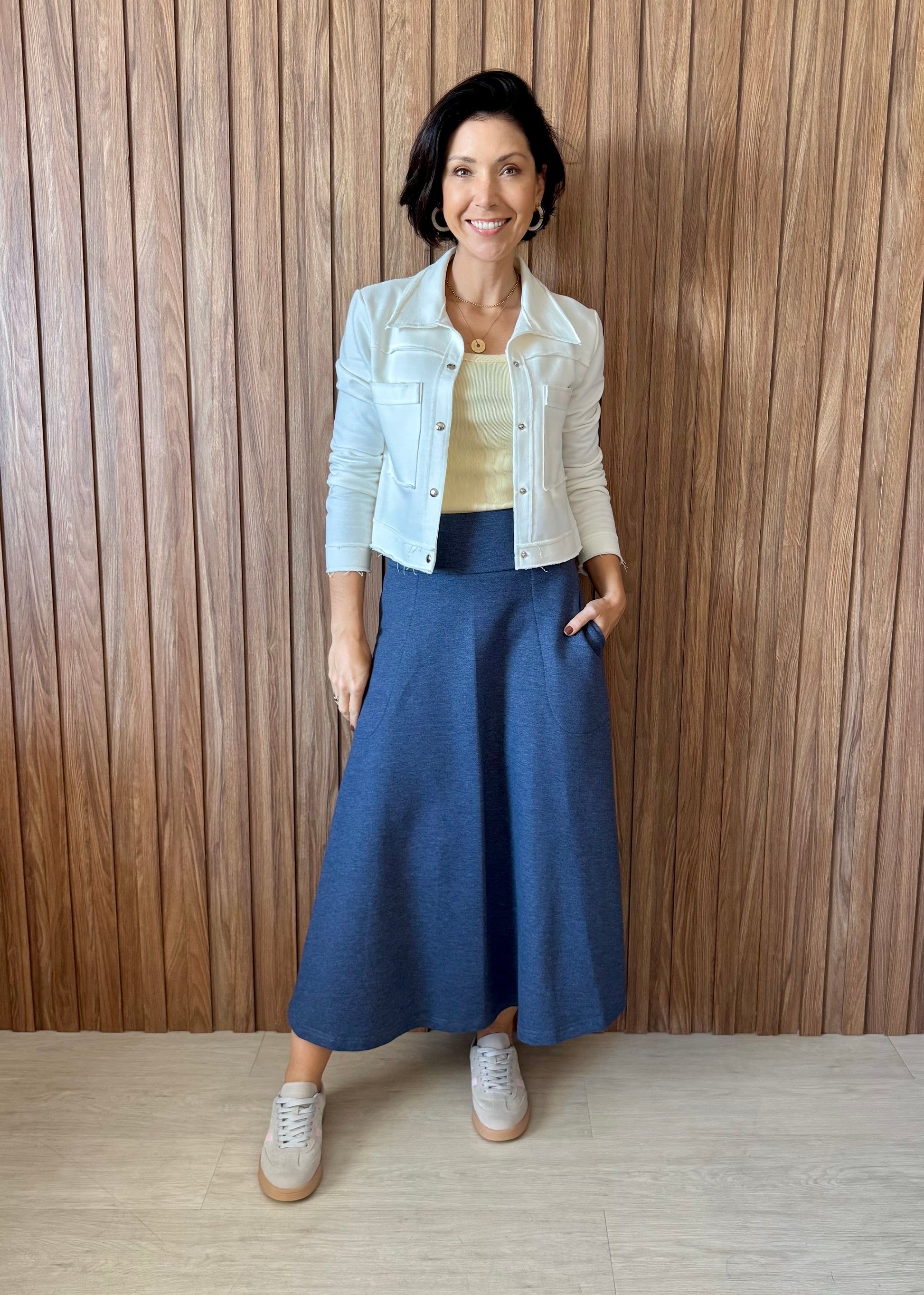 Composição: 63% poliéster, 33% viscose, 4% elastano
