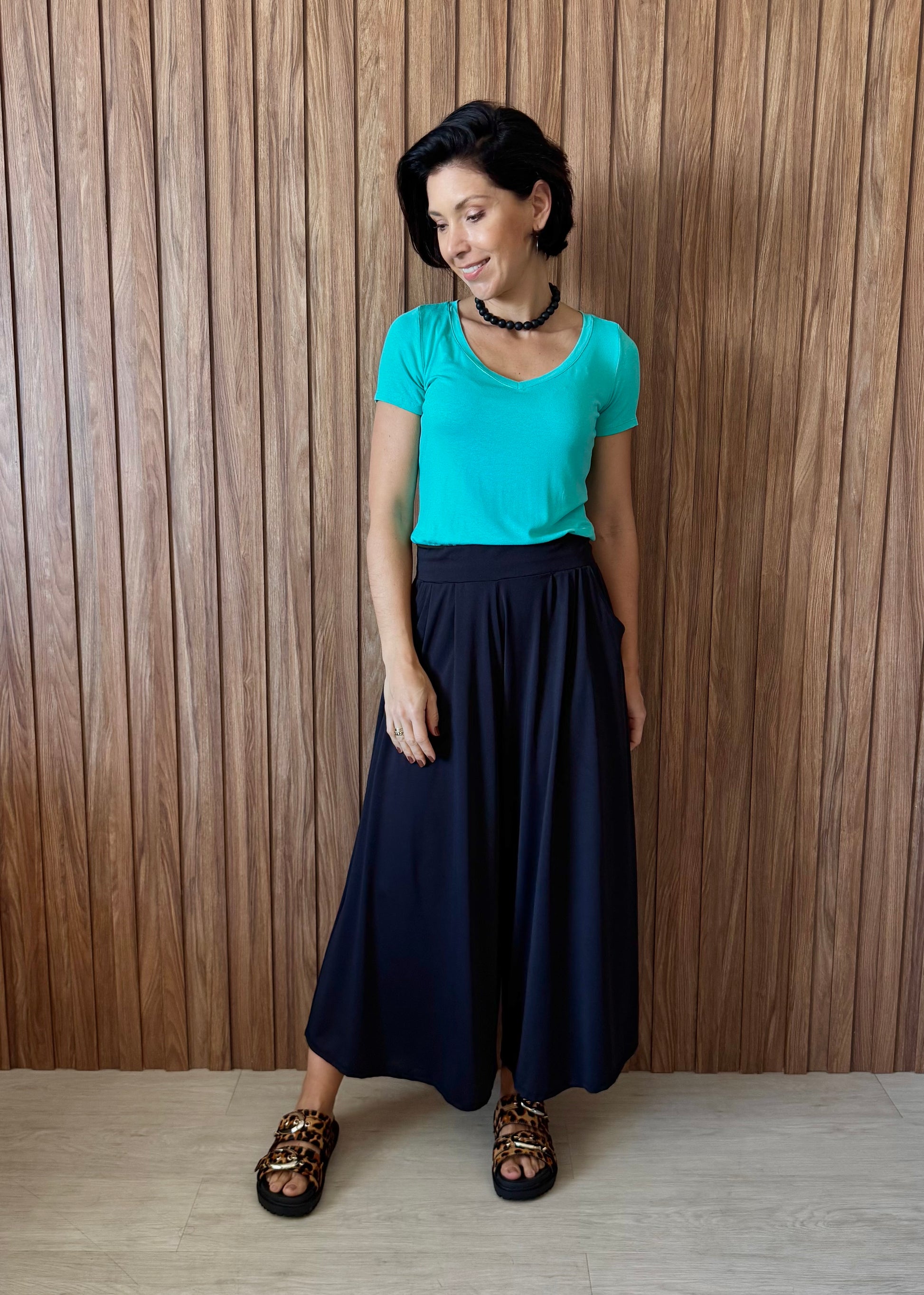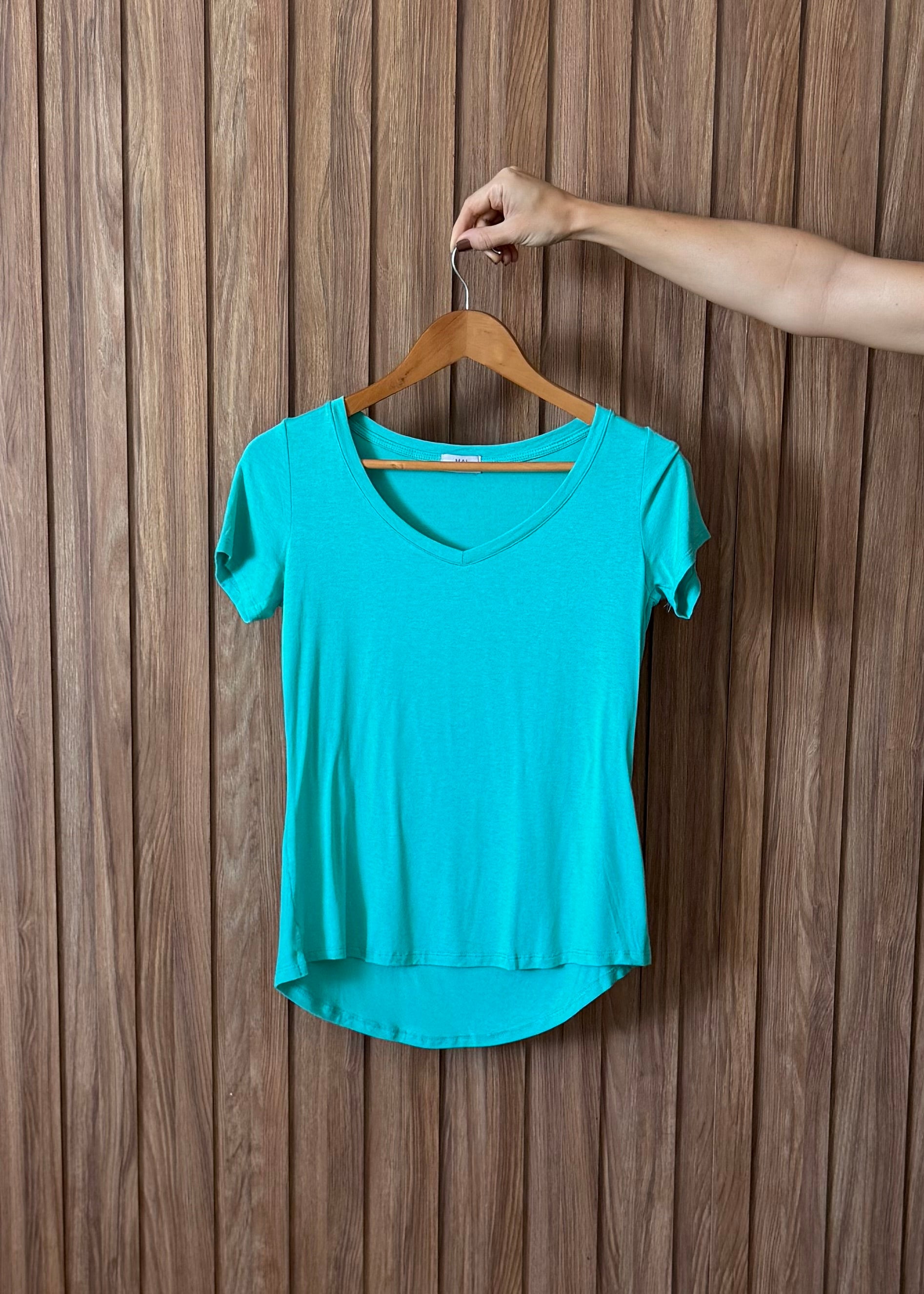 Aquela camiseta básica que não pode faltar no armário, perfeita pra ficar em casa de boa, ou passear por aí despreocupada ;) Ideal ter uma de cada cor, pra colorir seu dia a dia! Decote V não muito profundo, super comfy.
