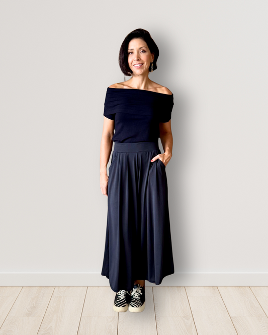 Saia Reta Moletinho com elastano (Azul Marinho)